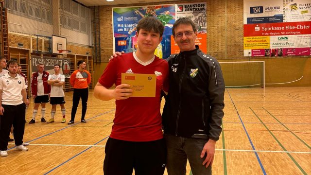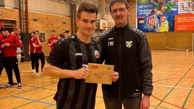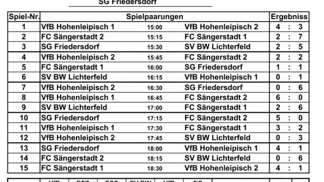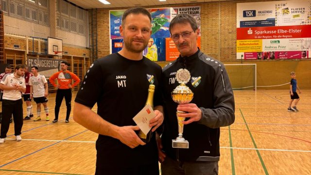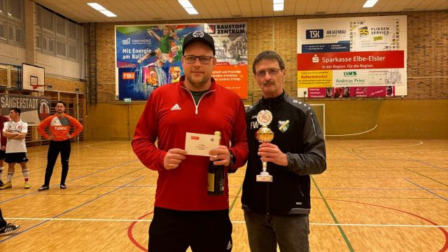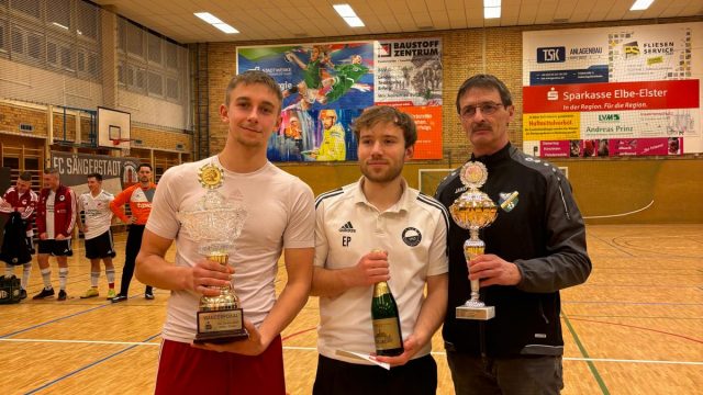 Beim diesjährigen Hallenturnier des FC Sängerstadt konnte der Pokalverteidiger aus Hohenleipisch wieder den Sparkassen-Cup mit nach Hause nehmen. Die 1. Mannschaft vom Gastgeber holte sich in einem Herzschlagfinale im letzten Turnierspiel den 2. Platz und stellte mit O. Kutscher den besten Torschützen des Turniers. Dritter wurde die SG Friedersdorf, die mit E. Bieler den besten Torwart in ihren Reihen hatten. Der 4. Platz ging an die Blau-Weißen aus Lichterfeld. Fünfter wurde die 2. Mannschaft des VfB Hohenleipisch, vor der 2. Mannschaft des FC Sängerstadt.
