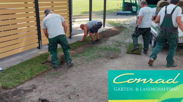 Am letzten Wochenende verlegte die Firma Garten- & Landschaftsbau J. Conrad am neuen Grillplatz im Nachwuchszentrum des FC Sängerstadt einige Bahnen Rollrasen. Damit sind die Arbeiten am neuen Grillplatz so gut wie abgeschlossen. Beim nächsten Heimspiel kann dort eine leckere Bratwurst oder andere Grillspezialitäten genossen werden.